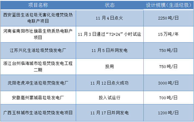 來看看,近段時間都有哪些垃圾焚燒項目正式投產了。